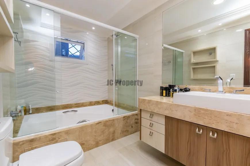 – suíte no térreo com saída para piscina, espaçosa com closet, ar-condicionado, banheiro com pia sobreposta dupla e banheira de hidromassagem ;