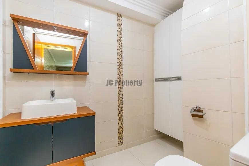 – e outros 2 quartos servidos por Banheiro social bem iluminado e ventilado, com pia sobreposta e armário planejado;
